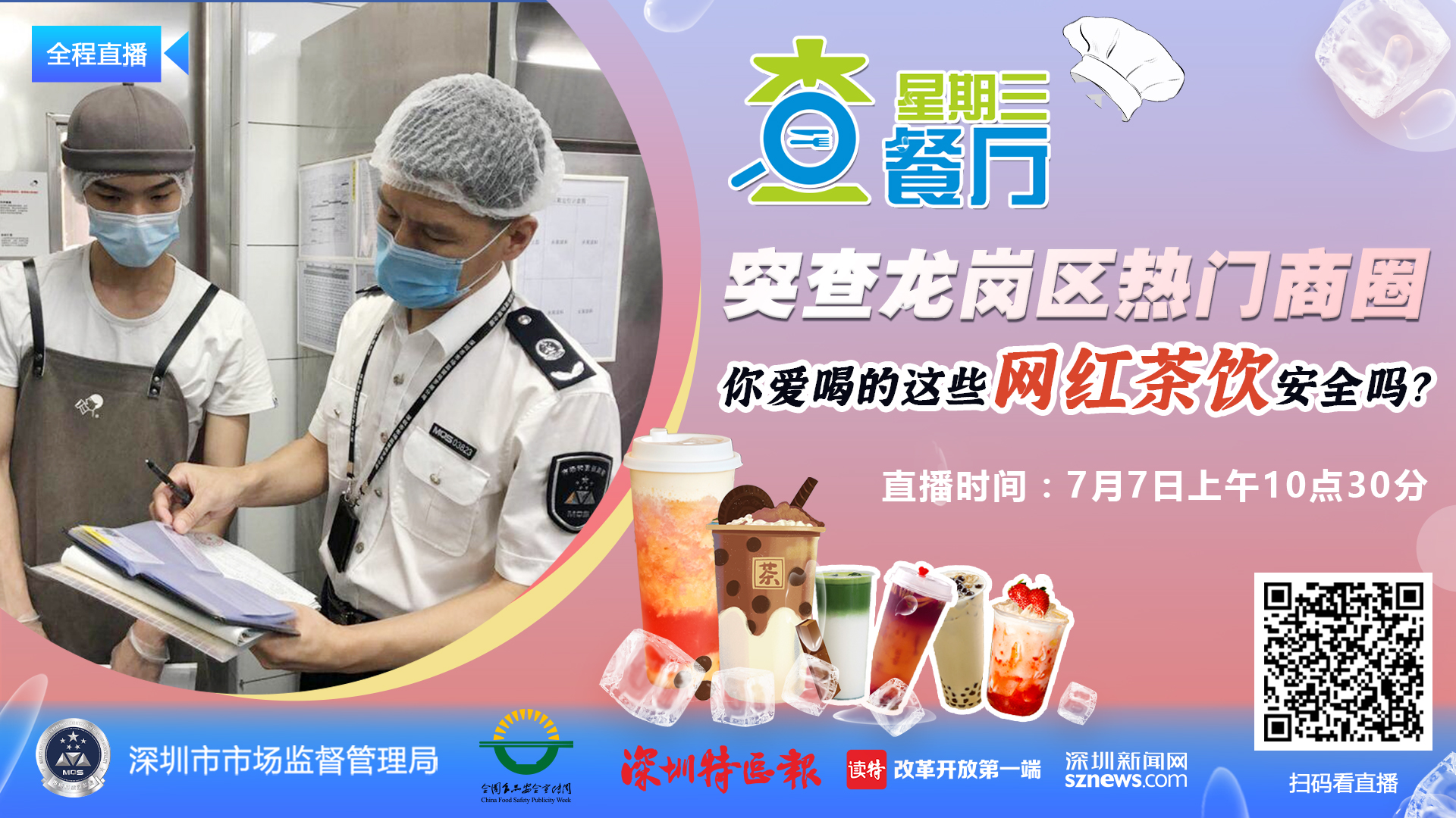 “星期三查餐廳,讓深圳人吃的更放心”。8月2日,有媒體曝光“奈雪的茶”存在食品安全隱患,在社會上引起廣泛關(guān)注,同時(shí)正值濕米粉中毒事故高發(fā)期,為回應(yīng)民生熱點(diǎn),科普食安知識,8月4日,“星期三查餐廳”專項(xiàng)執(zhí)法行動(dòng)突擊檢查位于鹽田區(qū)大梅沙的“奈雪的茶”飲品店和經(jīng)營濕粉類餐飲店--海月居海鮮餐廳。